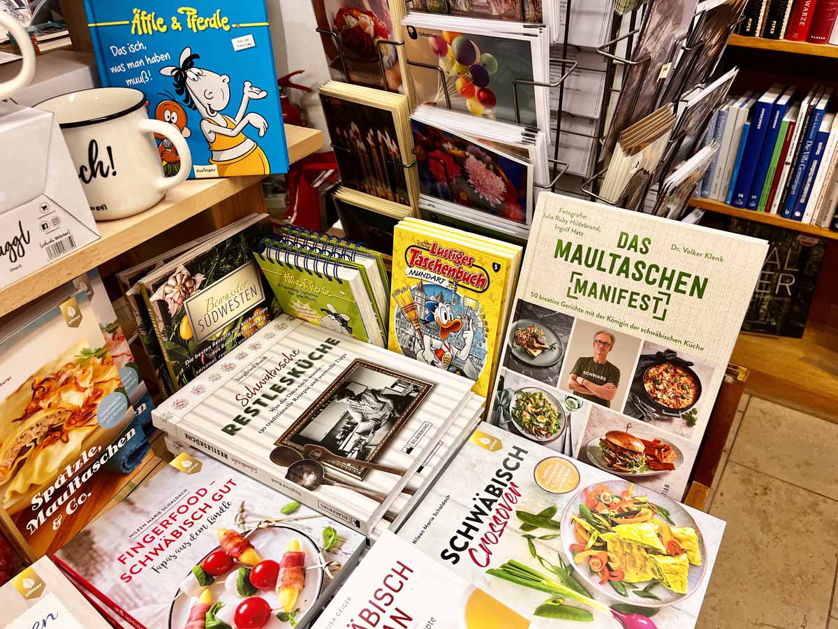 Als Buchautor ist es für mich daher eine besondere Ehre, dass meine „Bibel für Maultaschenjünger“ (Hogapage) auch in der sehr gut sortierten Buchhandlung Krüger im Kloster Maulbronn prominent präsentiert und angeboten wird.