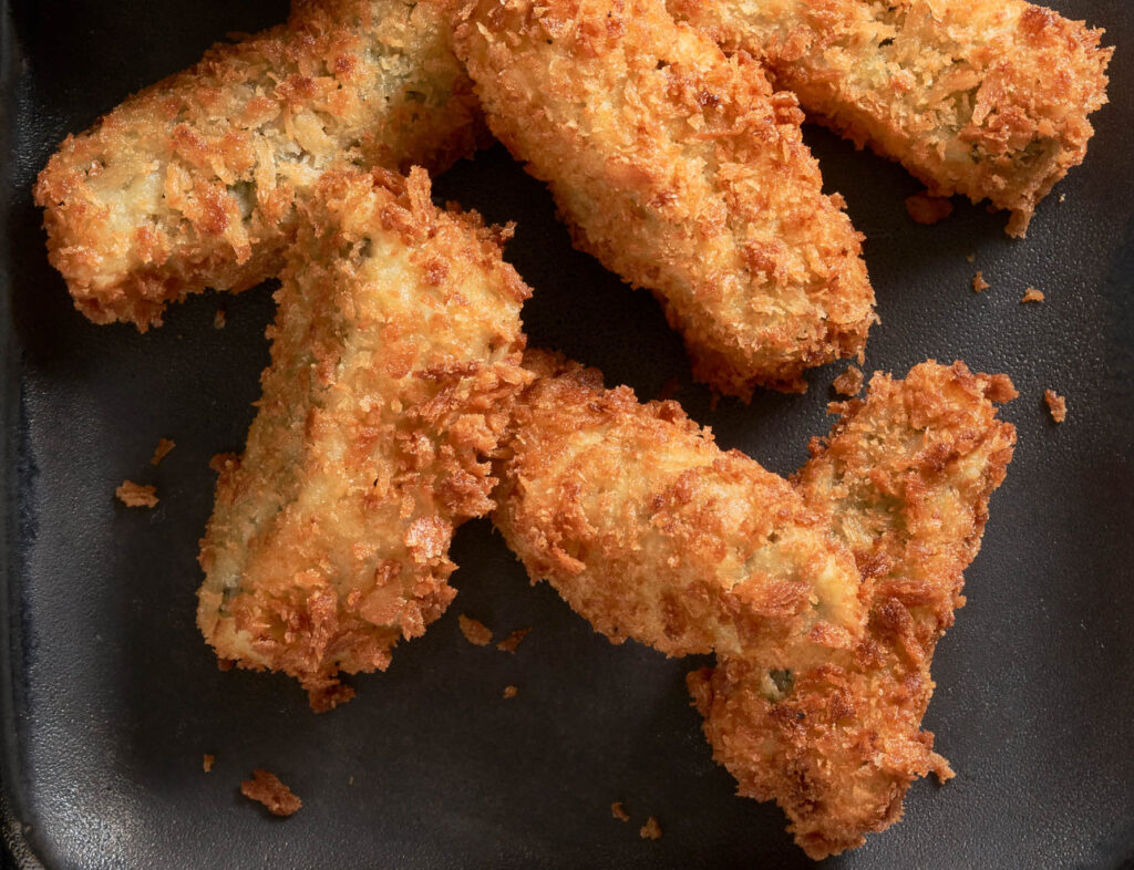 - Tipp: Beim Panieren die Sticks mit der einen Hand nur in dem Ei wälzen, mit der anderen Hand nur in den trockenen Bestandteilen der »Panierstraße«. So bleibt es eine saubere Sache.