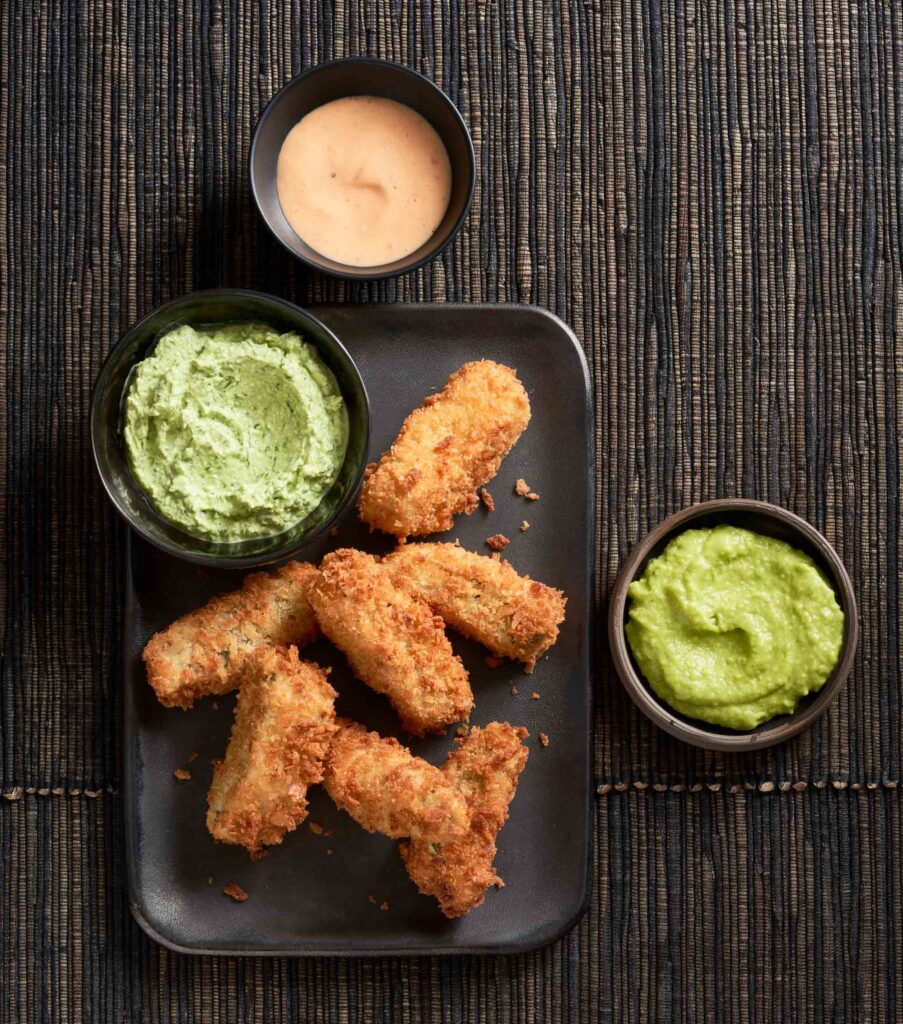 - ANRICHTEN: Die Sticks aus der Pfanne nehmen, auf Küchenpapier etwas abtropfen lassen. Dann rasch in einer vorgewärmten Schüssel auf den Tisch bringen. Jeder nimmt sich seine Lieblingsdips auf seinen Teller. Die Sticks mit den Fingern greifen, dippen, genießen.Tipp: Soll es eine Hauptspeise sein, passt dazu eine große bunte Salatschüssel voll mit frischen, knackigen Zutaten. Die frittierten Sticks als Topping drübergeben und mit frischem Zitronensaft beträufeln.Copyright Foto Tellergericht: © Julia Ruby Hildebrand / Christan Verlag