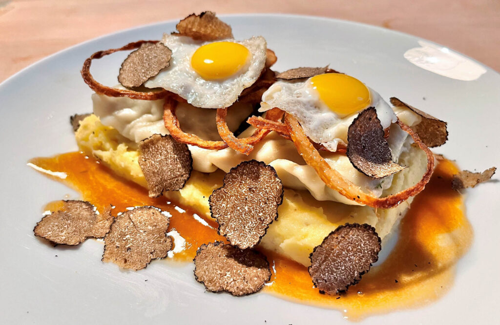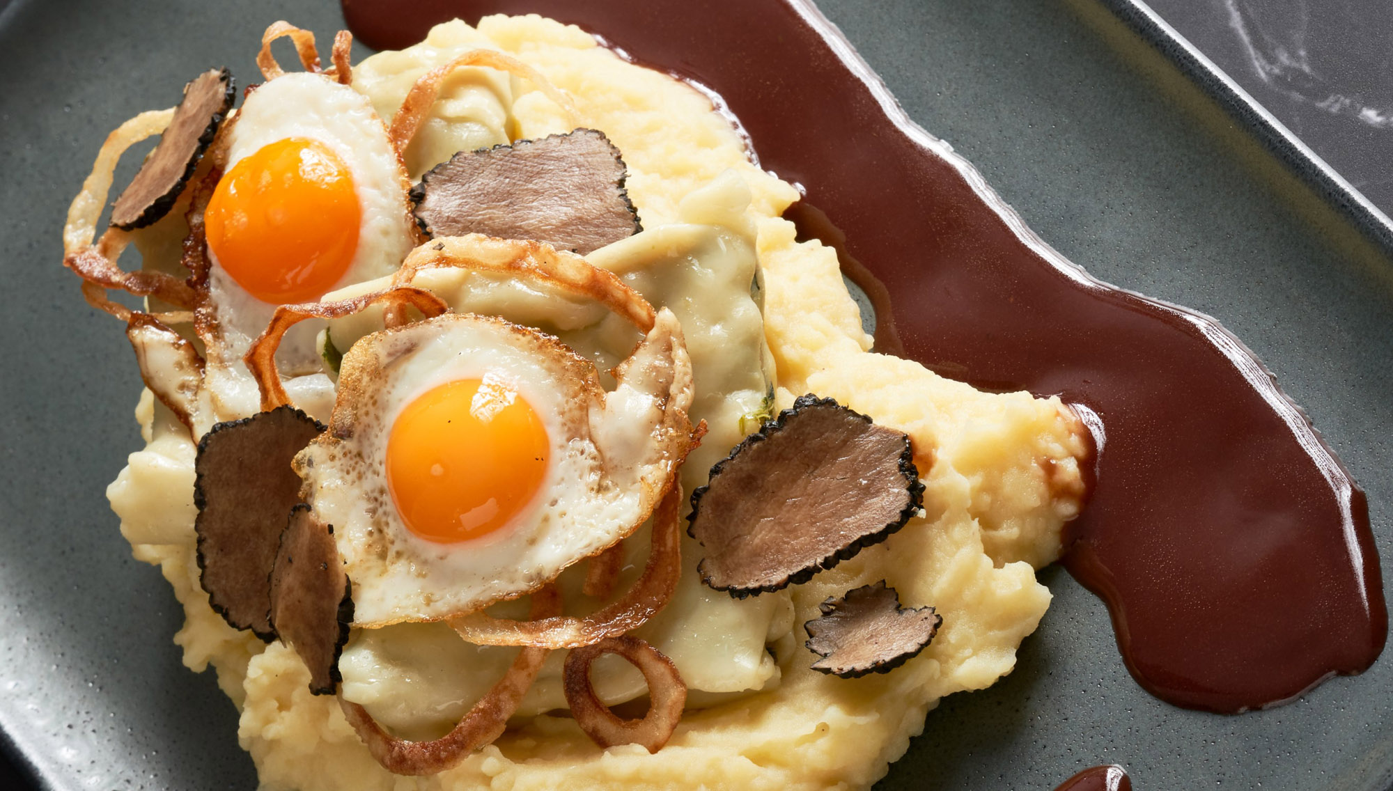 Mauldascha uff Kartoffelbrei mid weiße Trüffel