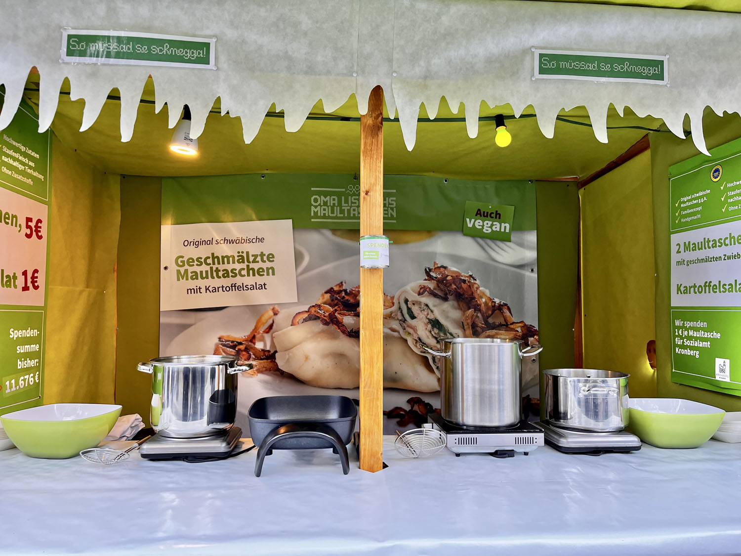 Mit der großartigen Unterstützung vieler Freunde, darunter auch wieder welche, die extra aus Stuttgart kamen, haben wir rund 1.800 Maultaschen verkaufen können. Prominenteste Kundin bei uns am Stand war die Bundesinnenministerin Nancy Faeser, die ganz offensichtlich schwäbische Spezialitäten schätzt.